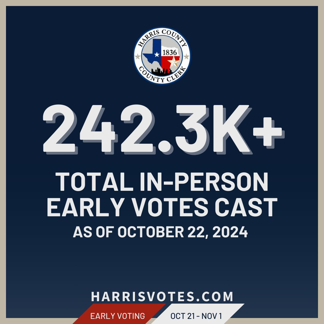 Harris County is reporting over 242,000 in-person votes total for Day 1 + Day 2.