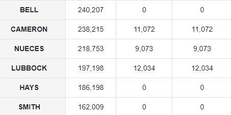 Bell, Hays, and Smith are the three major counties that still don’t appear on the SoS website.