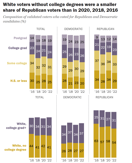 The data tells us that the more educated a person is, the more likely they are to vote Democrat. According to the U.S. Department of Education, 54% of Americans ages 16 to 74 now rank below a sixth-grade reading level.
