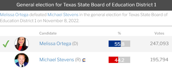 The bulk of SBOE-11 is in Tarrant County. If Tarrant County can achieve a high voter turnout this November, Glasser has a real shot at flipping this seat. Since the Republican running for this seat is a Christian Nationalism extremist, Glasser would serve her campaign well by appealing to moderate Republicans and Independent voters. She should also focus on the voucher issue since her opponent is a pro-voucher Republican. We’ll revisit this race before November.