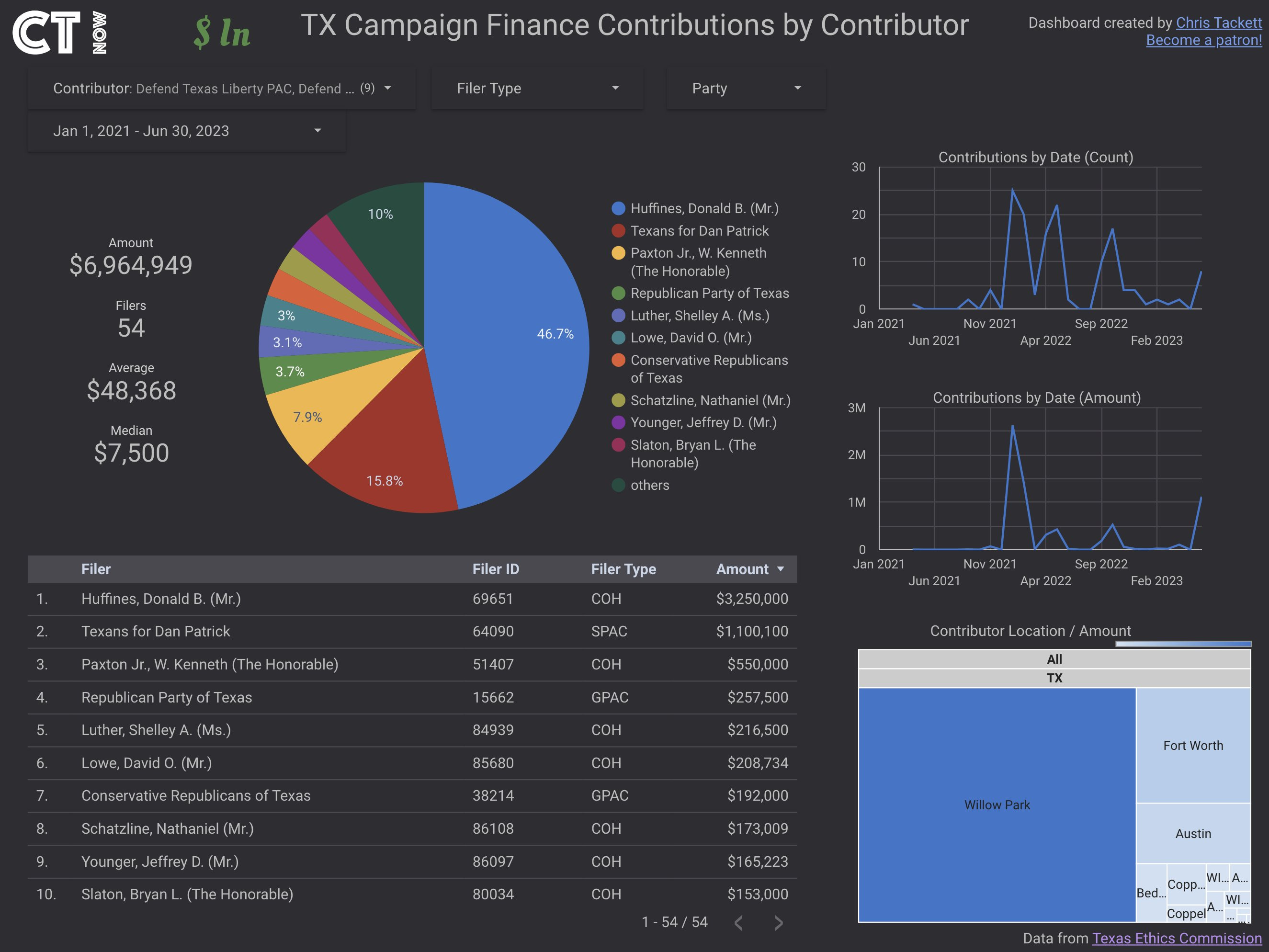 In October 2023, the Texas Tribune exposed several high-profile GOP operatives who had a seven-hour meeting with self-avowed white supremacist Nick Fuentes in the Defend Texas Liberty PAC’s Fort Worth office. As the weeks progressed, more of this story exploded, exposing the ties between Defend Texas Liberty PAC, True Texas Project, Texas for Strong Borders, and West Texas billionaires for their long ties with white supremacists. Aside from the West Texas billionaires, all these organizations are based in Tarrant County.