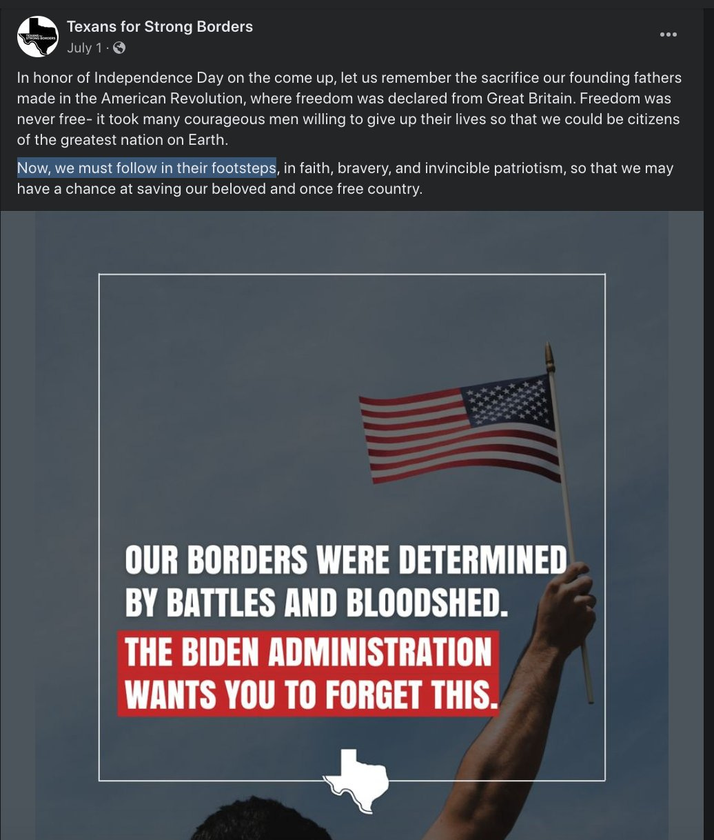 Texans for Strong Borders frequently uses white supremacist rhetoric publicly and was an instrumental part of getting SB4, the unconstitutional and racist “show me your papers” bill, passed through the Texas Legislature.