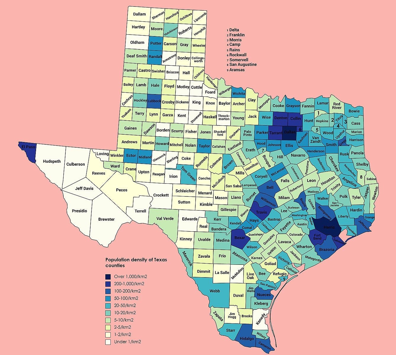 The following seven counties are the biggest red counties in Texas. Although a few of them, like Ellis and Smith, are moving blue, they aren’t likely to flip before 2030.