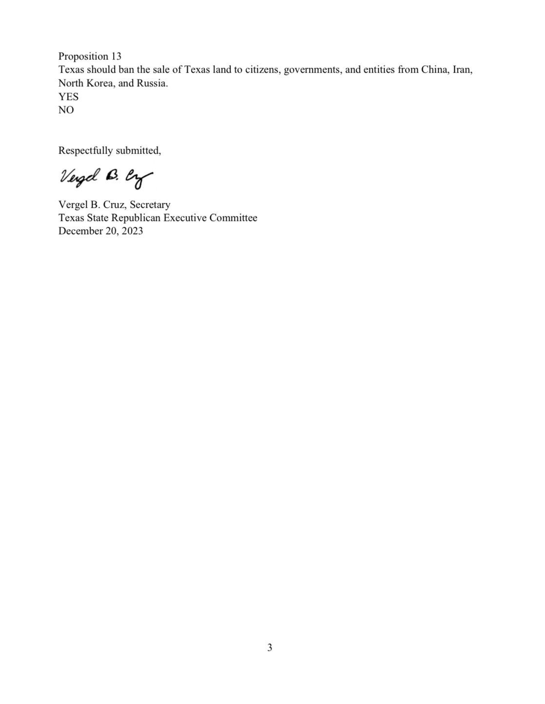Proposition Thirteen - Texas should ban the sale of Texas land to citizens, governments, and entities from China, Iran, North Korea, and Russia.