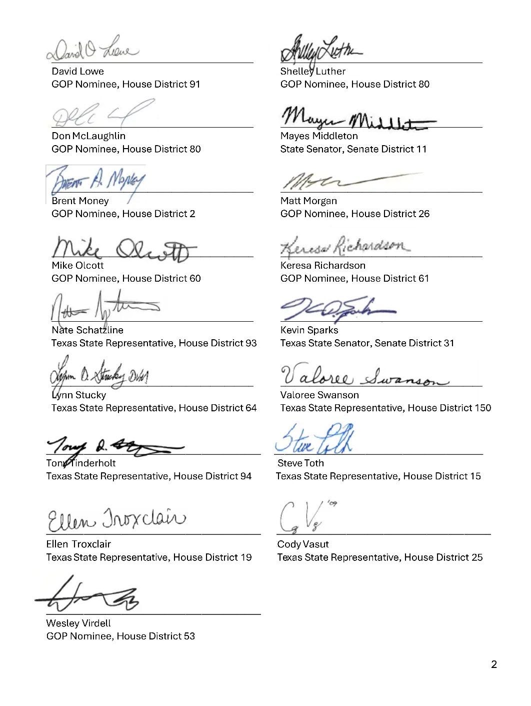 Only five of these Republicans are running unopposed in the Texas House. The two Senators aren’t up for re-election until 2026. Another four are in severely gerrymandered districts, which are nearly impossible to flip.