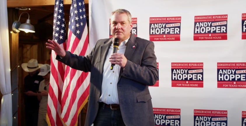 That’s exactly what I was doing when I came across newly elected Texas House Republican Andy Hopper’s (R-HD64) video on Facebook.