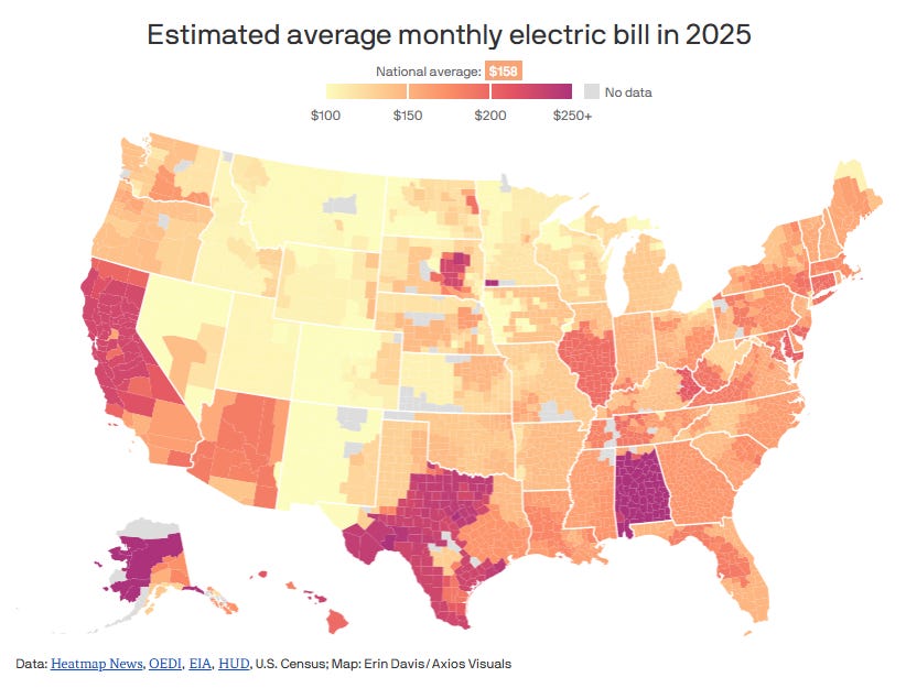 There are multiple financial aspects of what’s happening here. Before we get into that, I wanted to point to this article published this week from Axiom, which mapped America’s highest electricity bills.