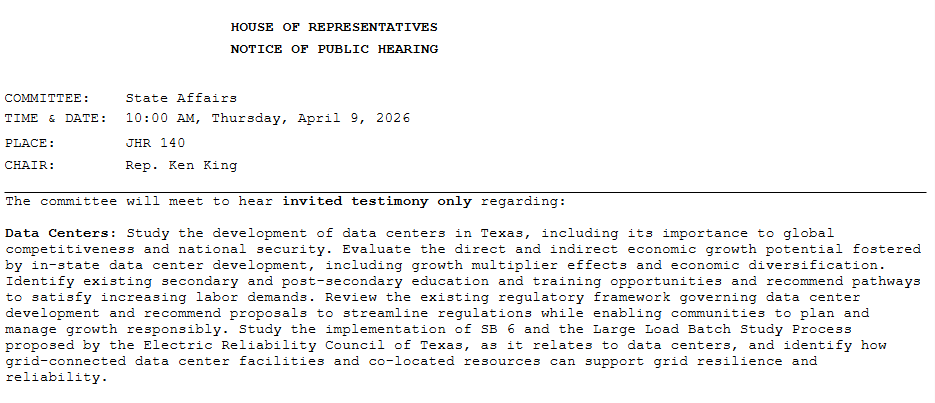Another point raised during the hearing was that Representative Ken King (R) asked about Virginia, the data center capital of the US. Virginia already has hundreds of data centers, but it can handle them because it has built its electric infrastructure over decades. Texas, however, is in rapid growth mode. Yet, companies want to come here because we have more land, fewer regulatory hurdles, and room to expand. We don’t have the infrastructure for it.