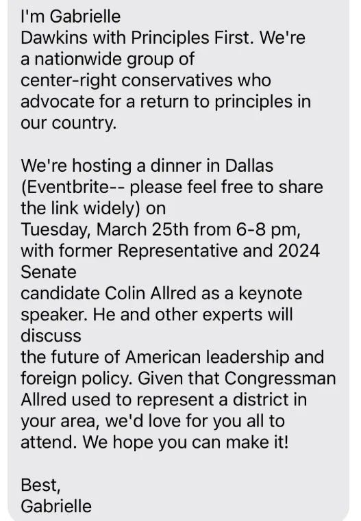This is the message that went out to some Collin County Democrats: