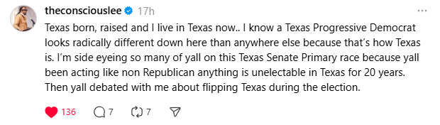 There’s just too much going on, and I want to get to it all, but we can’t lose sight of how vital these down-ballot races are. Right now, from every corner of the internet and every channel on TV, it’s Crockett and Talarico, but they’re the shiny object, while these down-ballot races are where power actually shifts, policy actually changes, and people’s daily lives actually get better or worse.