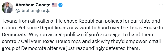 And the Chair of the Republican Party of Texas said that “some Republicans want to hand over the Texas House to Democrats.”