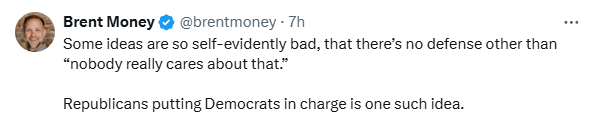Then, Republicans move forward with their agenda without Democratic Chairs, without bipartisanship with the other side, and they pass all of their nasty culture war bills. But Democrats could permanently block their budget and constitutional bills.