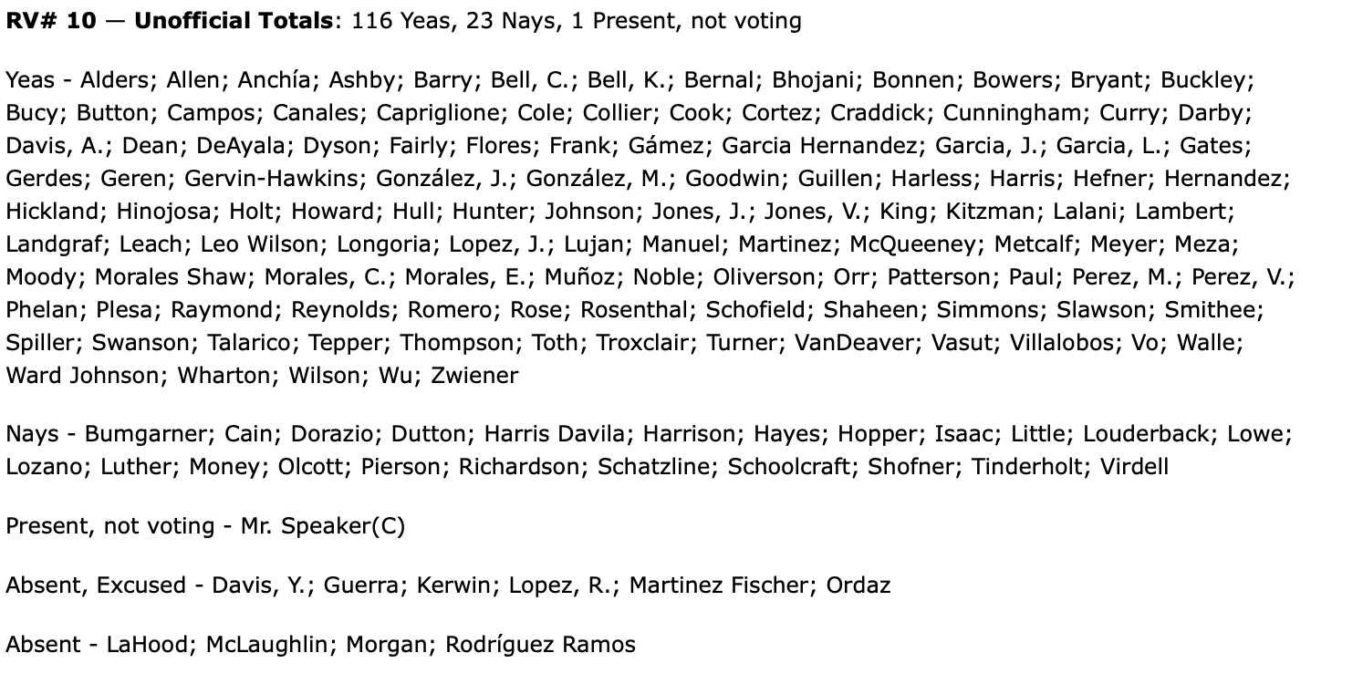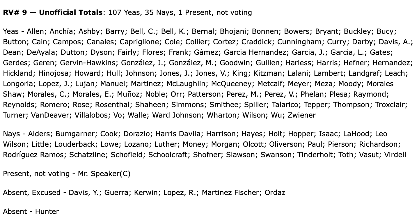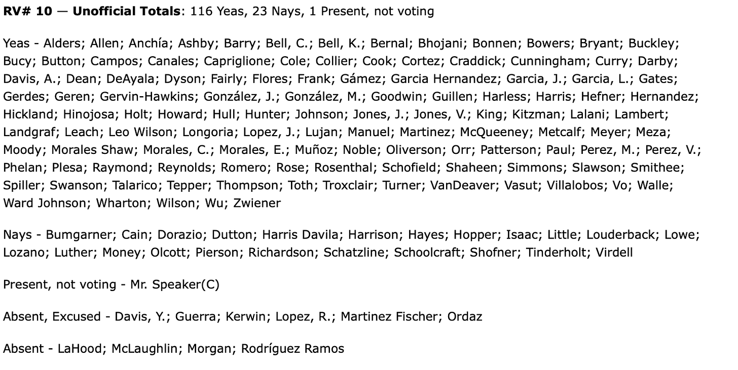 The 35 ‘nays’ below are going to be the problem children for the 89th Legislative session: