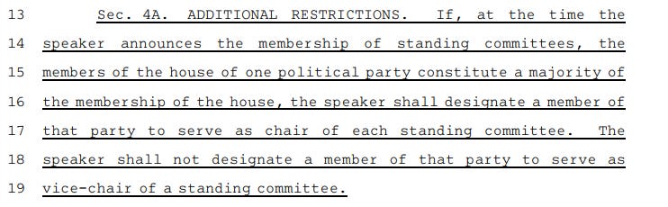 There are no more Democratic chairs, but all committees have Democratic vice chairs. Hunter also restructured several committees, ending some and creating new subcommittees. The far right didn’t like this because they felt it still allowed Democrats to participate in the legislative process.