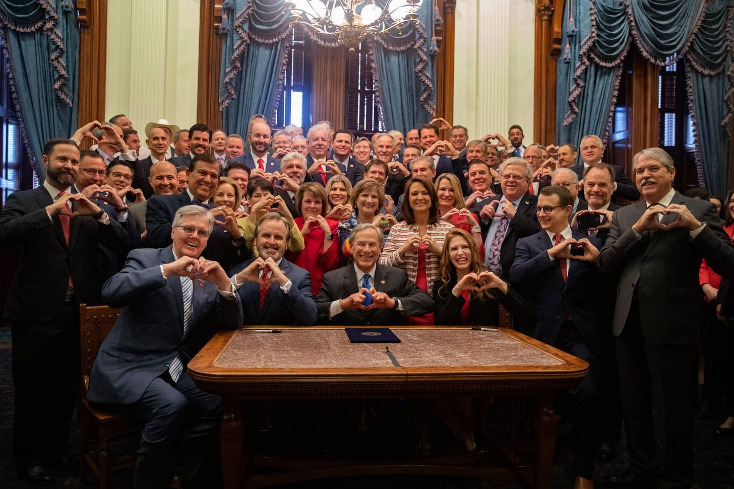 Yuck--That pic of everyone making a heart sign with their hands. Surprised Lois Kolkhorst wasn't front and center. What is Larry Taylor doing there?