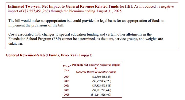 The legislative budget board just added a fiscal note to the voucher scheme bill, HB1. This scheme is estimated to cost Texas taxpayers $25 billion over the next five years. It’s important to note that vouchers will only be available to 1% of Texas’ 5.5 million children.