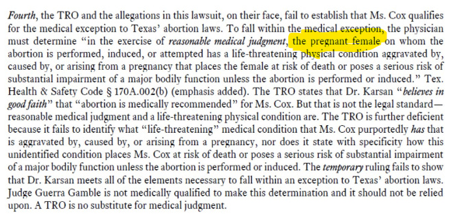 Notice under his fourth point. He called Kate Cox “the pregnant female.”