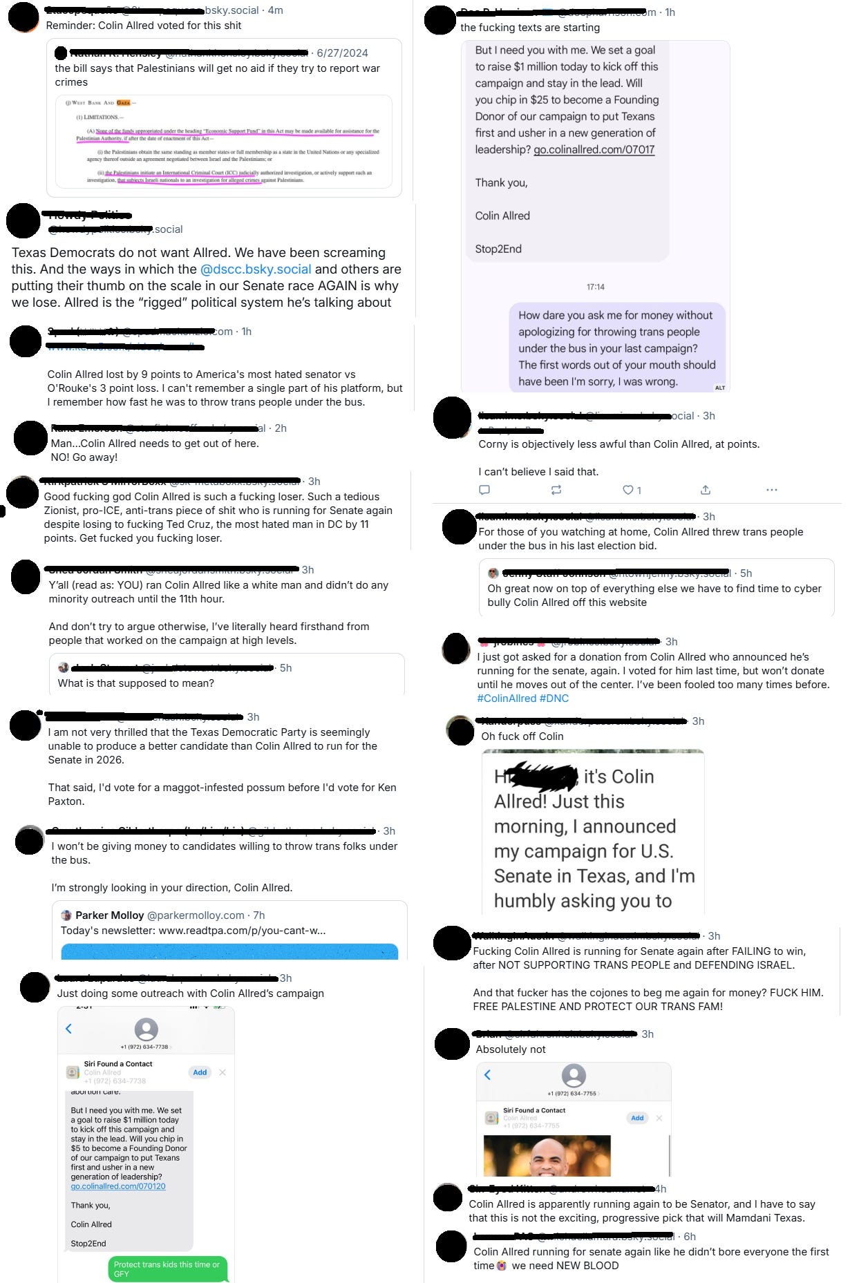As one person on Bluesky posted, Allred is part of the rigged political system that DC is pushing on us. Another person on Facebook said that grassroots leaders and voters across Texas want change. Repeatedly, Texas Democrats have said they are tired of establishment centrists and want progressive fighters to lead with conviction and moral clarity.