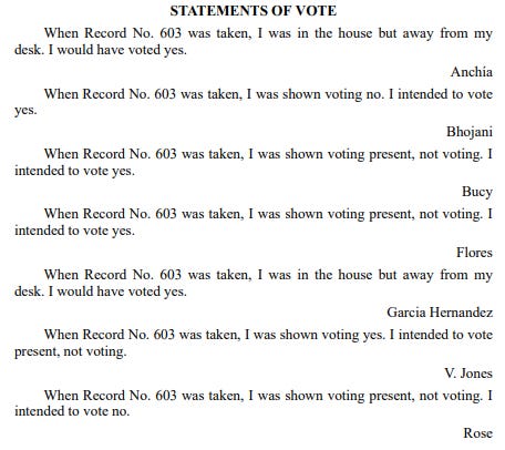 I will say, though, that these Democrats didn’t “accidentally” press the wrong button on any other bills yesterday. Some may be legit, but others appear to be gaming the system.