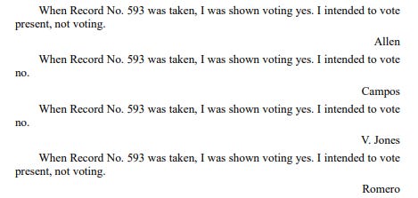 People press the wrong button. It happens all of the time. While the statements can be made in the journal about them pushing the wrong button, it doesn’t change their vote. There’s no way to know if they actually pressed the wrong button or if they voted with Republicans on purpose and then made the statement in the journal to avoid a backlash. All we can do is speculate.