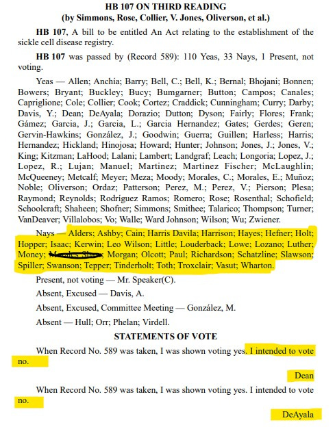 Yesterday, HB107 was passed, which will establish a sickle cell disease registry. This is a good bill. The Legislative Black Caucus has been trying to get this bill passed for several sessions now. It passed the House in 2023 and died in the Senate. This is a bill that would save the lives of Black people who have sickle cell disease.