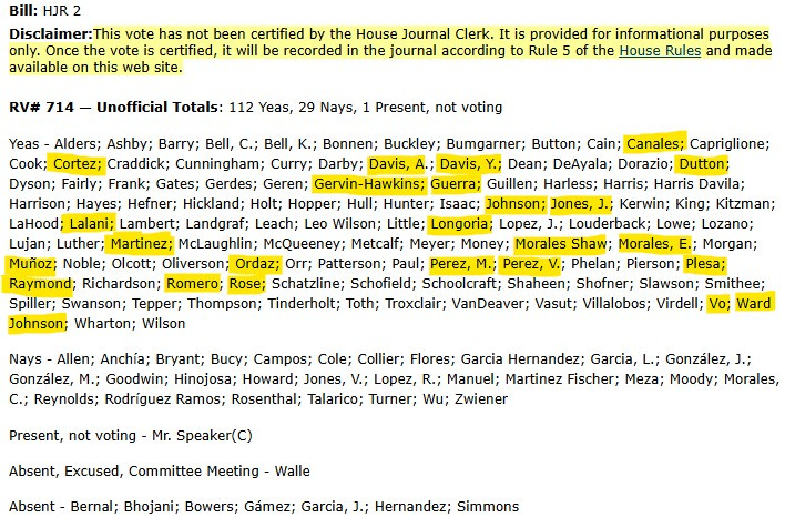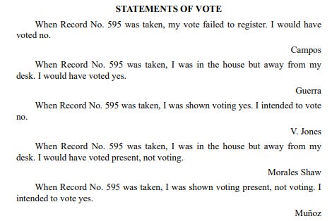 If you notice, only Democrats “pressed the wrong button” on these HJRs, and Democrats like Campos, V. Jones, and Munoz did it repeatedly.