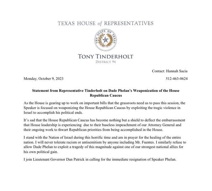 The Texas House is gaveling in right now, as I’m finishing this up (1:00 pm). I already have my screen-record going. Today it’s expected that either Tony Tinderholt or Brian Harrison will try and oust Dade Phelan as Speaker. I will have the clips when it happens and I’ll keep y’all updated.