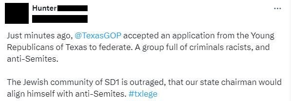 Multiple RPT members and activists have accused the new “Young Republicans of Texas” of being racist and anti-Semitic.