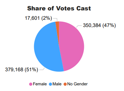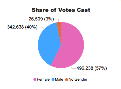 Here are the genders voting for Democrats:
