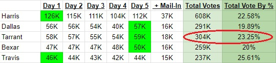 One thing is for sure: voter turnout in Tarrant County on Day 5 of 2020 was higher than it was in 2020.
