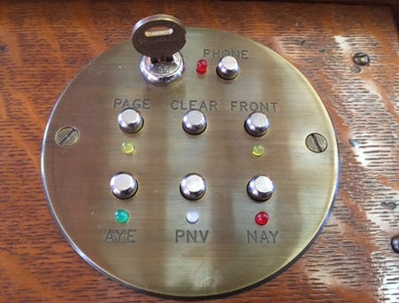 A bunch of people pressed the wrong button on both sides of the aisle. It happens a lot. Here’s what the buttons look like: