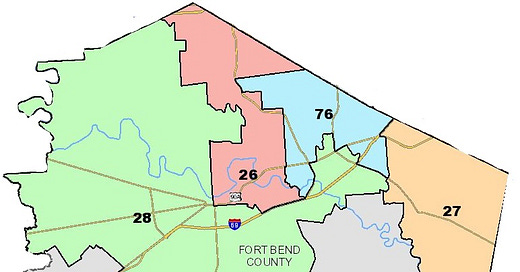 Fort Bend County is the most diverse county in Texas. In 2022, Beto won this county, despite only a 47% turnout. In 2020, Biden carried Fort Bend County by 10 points. There are five gerrymandered Texas House districts in Fort Bend County, three of which belongs to Republicans.