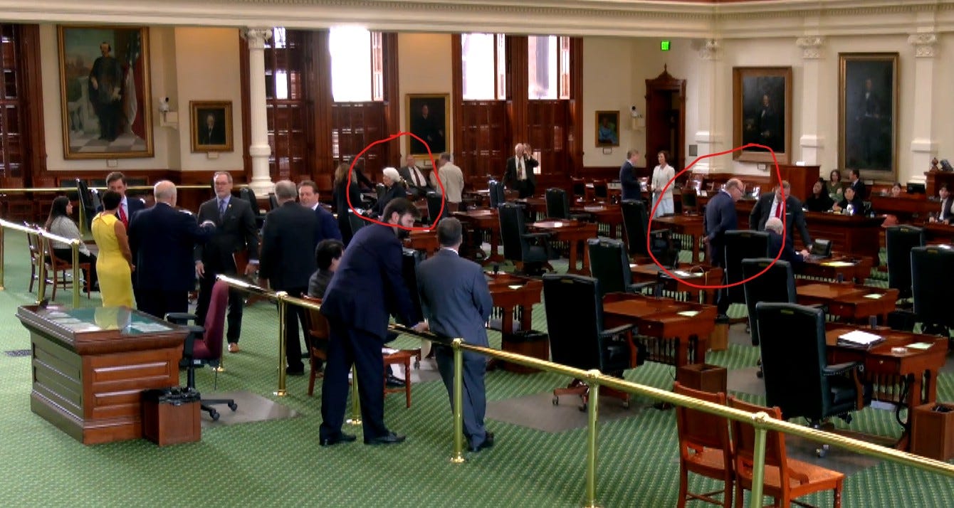 Almost all of the Texas Senators have joined our House representatives in the quorum break, with only two exceptions. While no Senators were spotted on Monday, the Senate is in session today, and Judith Zaffirini and Chuy Hinojosa were both spotted on the Senate floor: