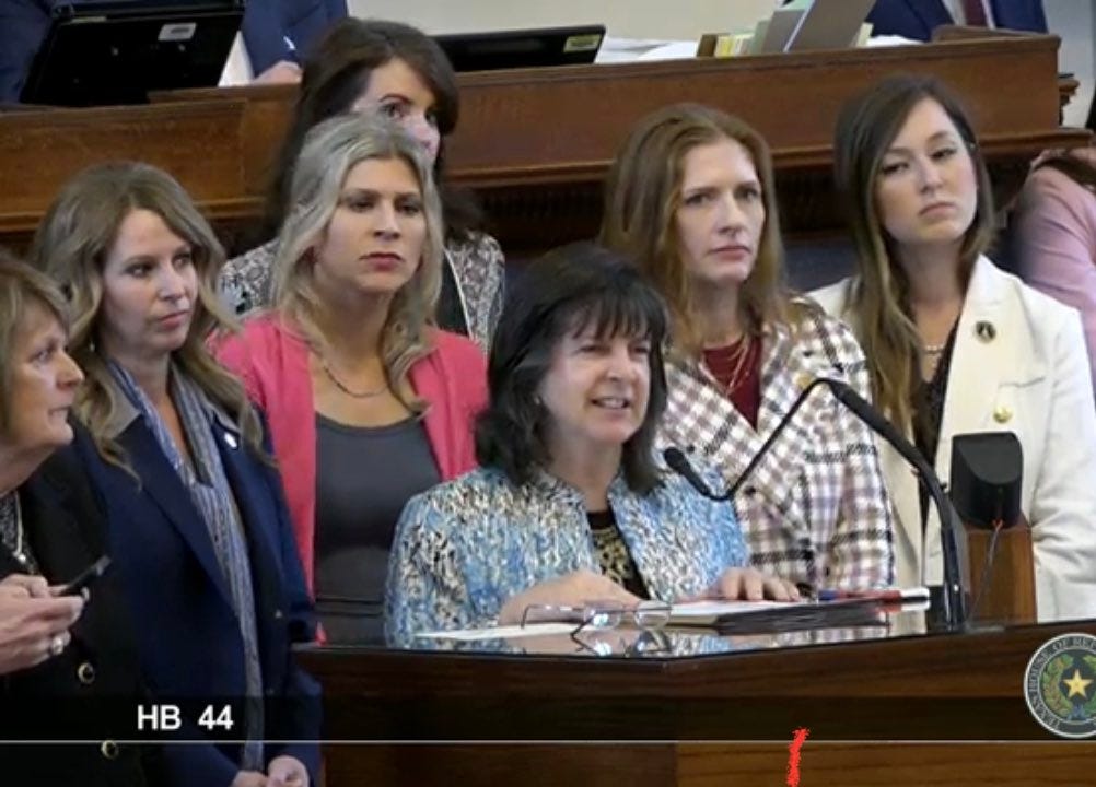 Angelina Orr (HD13-McLennan County) has taken an anti-feminist position in the Legislature, although she’s mostly been a behind-the-scenes lawmaker. While she’s taken group photos with the Gilead Wives Club, she never chased them up to the mic when it was one of their turns to debate a bill.