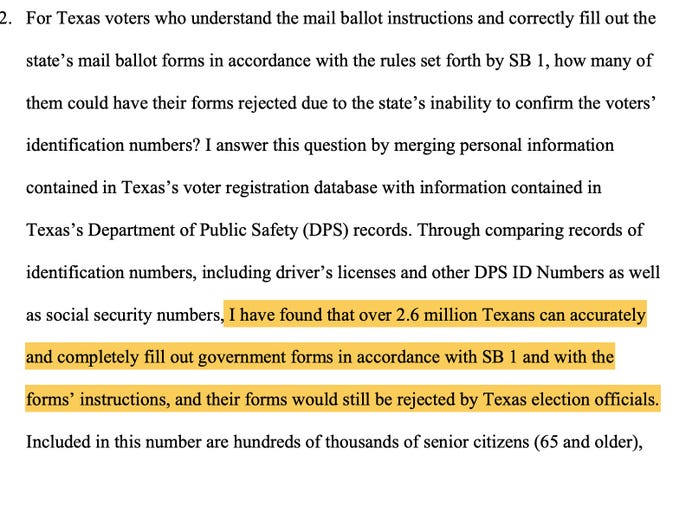 Earlier this month, Marc Elias, with the Democracy Docket, updated us with some of the findings of the ongoing lawsuits involving voting rights in Texas, specifically part of a court filing on 5/26/23 from Eitan Hersh.