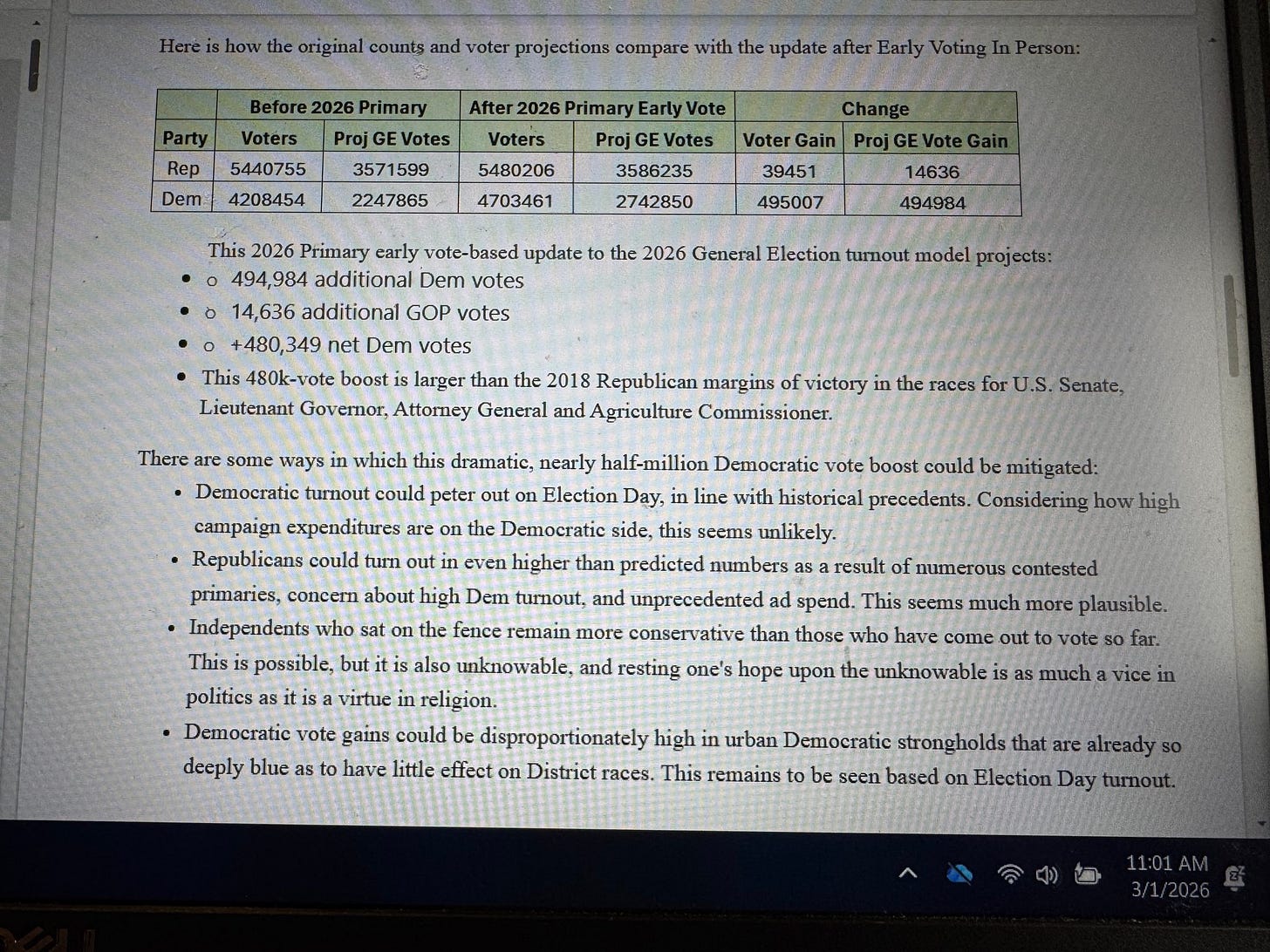 They are explicitly acknowledging that the turnout shift they’re seeing is large enough, by itself, to erase previous statewide Republican victory margins. They are explicitly acknowledging that their current data shows a major Democratic advantage.